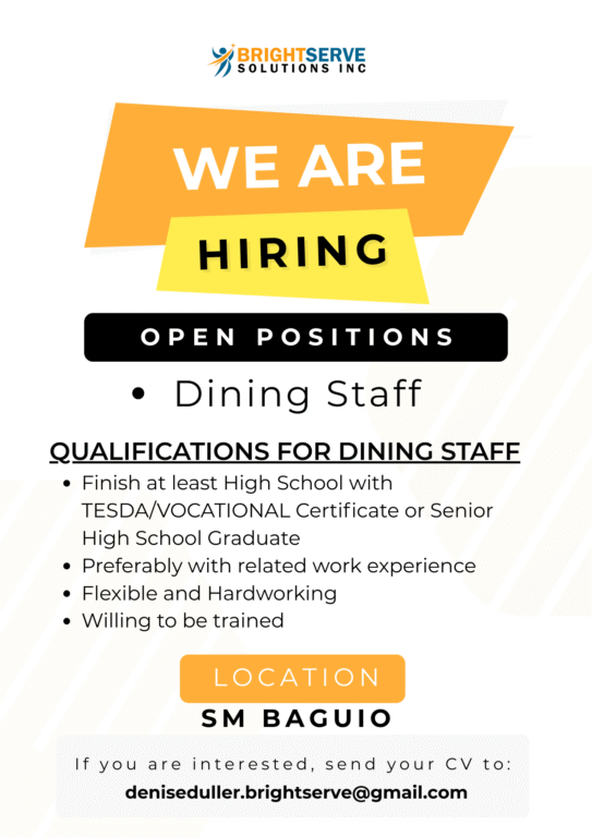 Brightserve Solutions and Max’s Restaurant are seeking a professional and attentive Dining staff