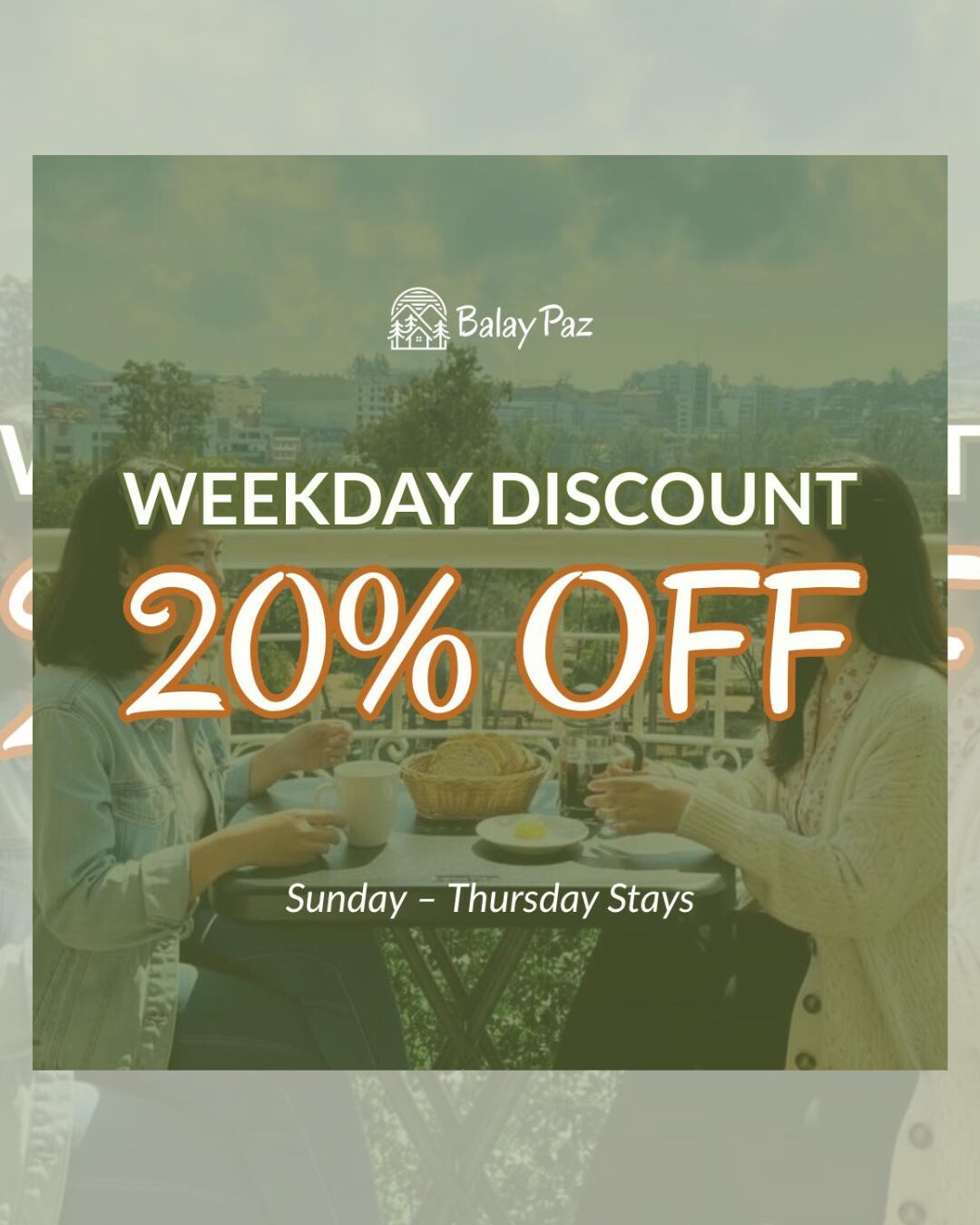 Fam! We’re happy to share our 20% WEEKDAY DISCOUNT for families, couples, and work-from-home guests who want a quiet space to relax, recharge, and enjoy Baguio at a slower pace.