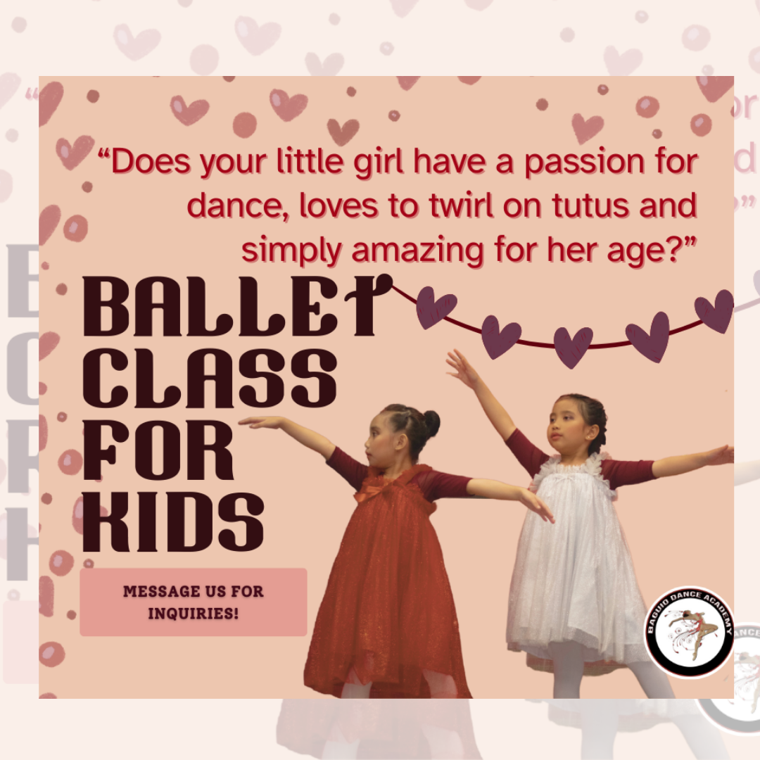 Baguio Dance Academy offers a warm and supportive environment where young dancers can discover and develop their passion for ballet and dance. Under the guidance of Dance Directress Teacher Liz Palaganas, the academy delivers quality instruction in a safe, encouraging, and child-centered setting.