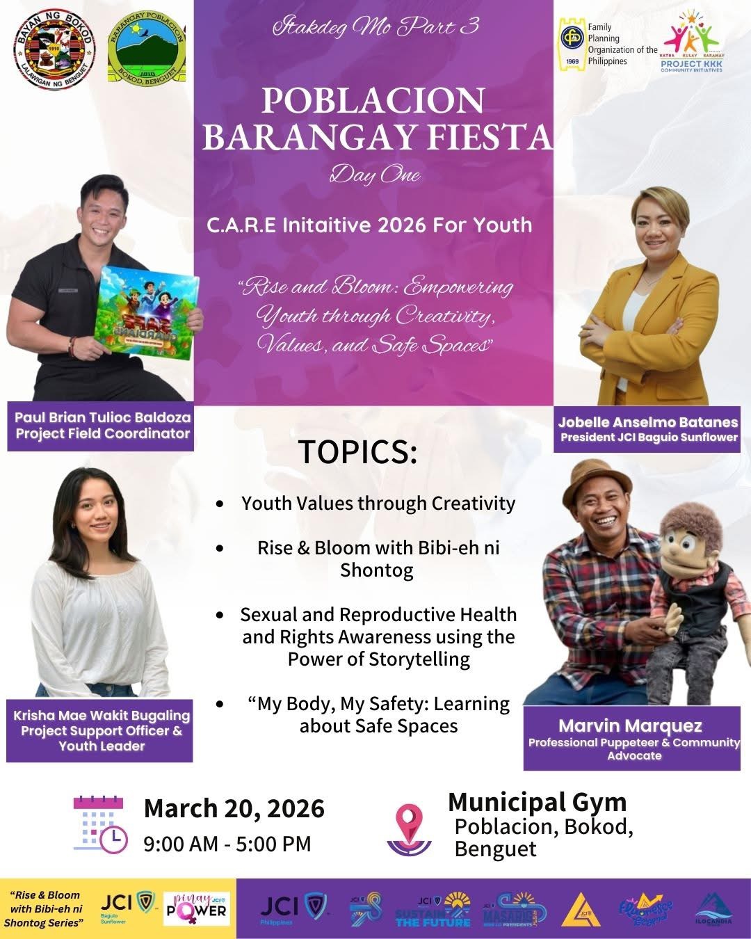 The JCI Baguio Sunflower, in collaboration with the Barangay Local Government Unit of Poblacion, Bokod, proudly brings this meaningful youth empowerment initiative to the community of Bokod, Benguet.