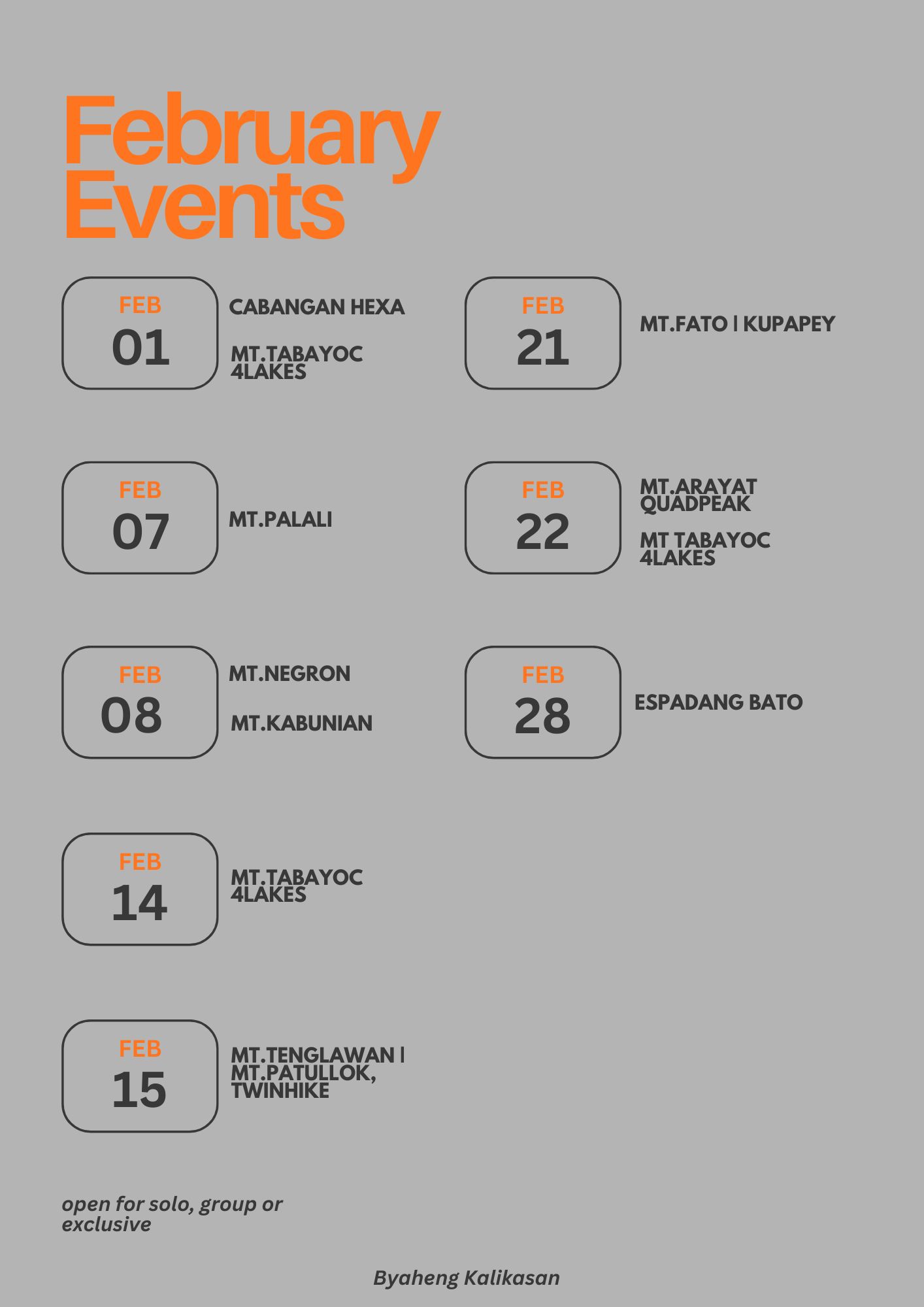 Byaheng kalikasan | February Hiking Schedule