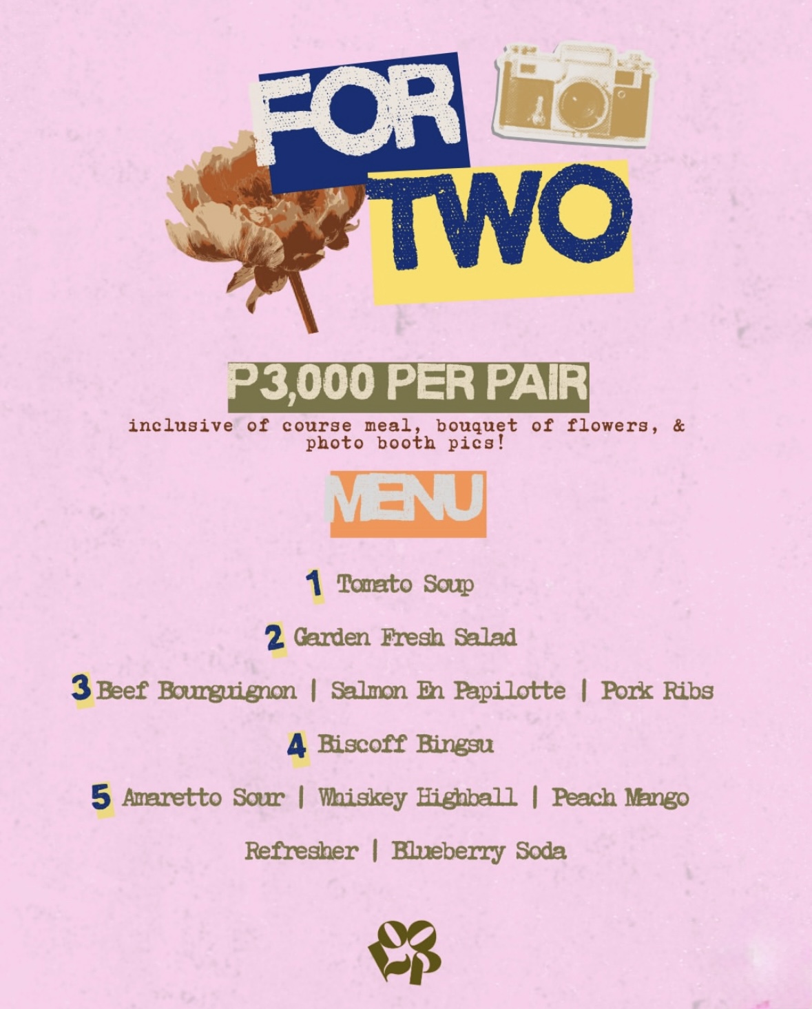 ✨ The Package: 🍽️ 4-Course Chef’s Dinner 💐 Hand-tied Bouquet 📸 Photo Booth Keepsakes 🎶 Live DJ Sets