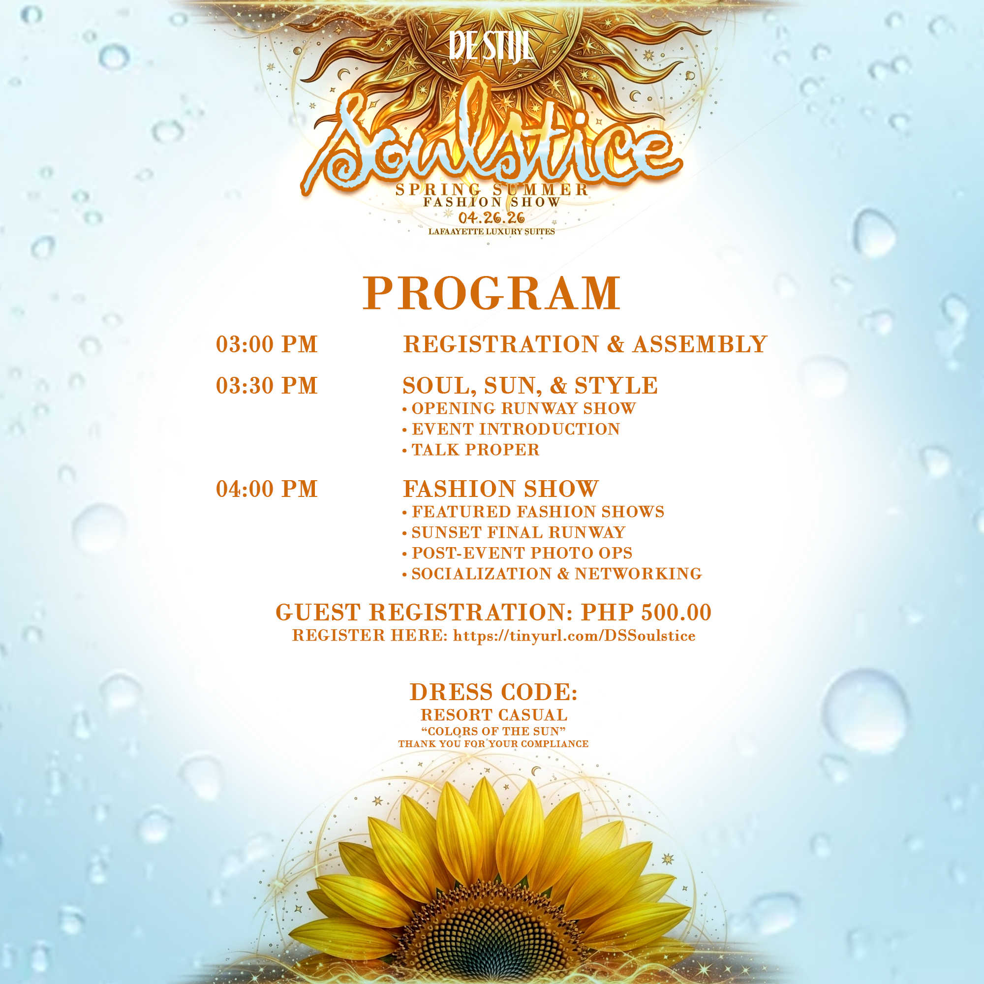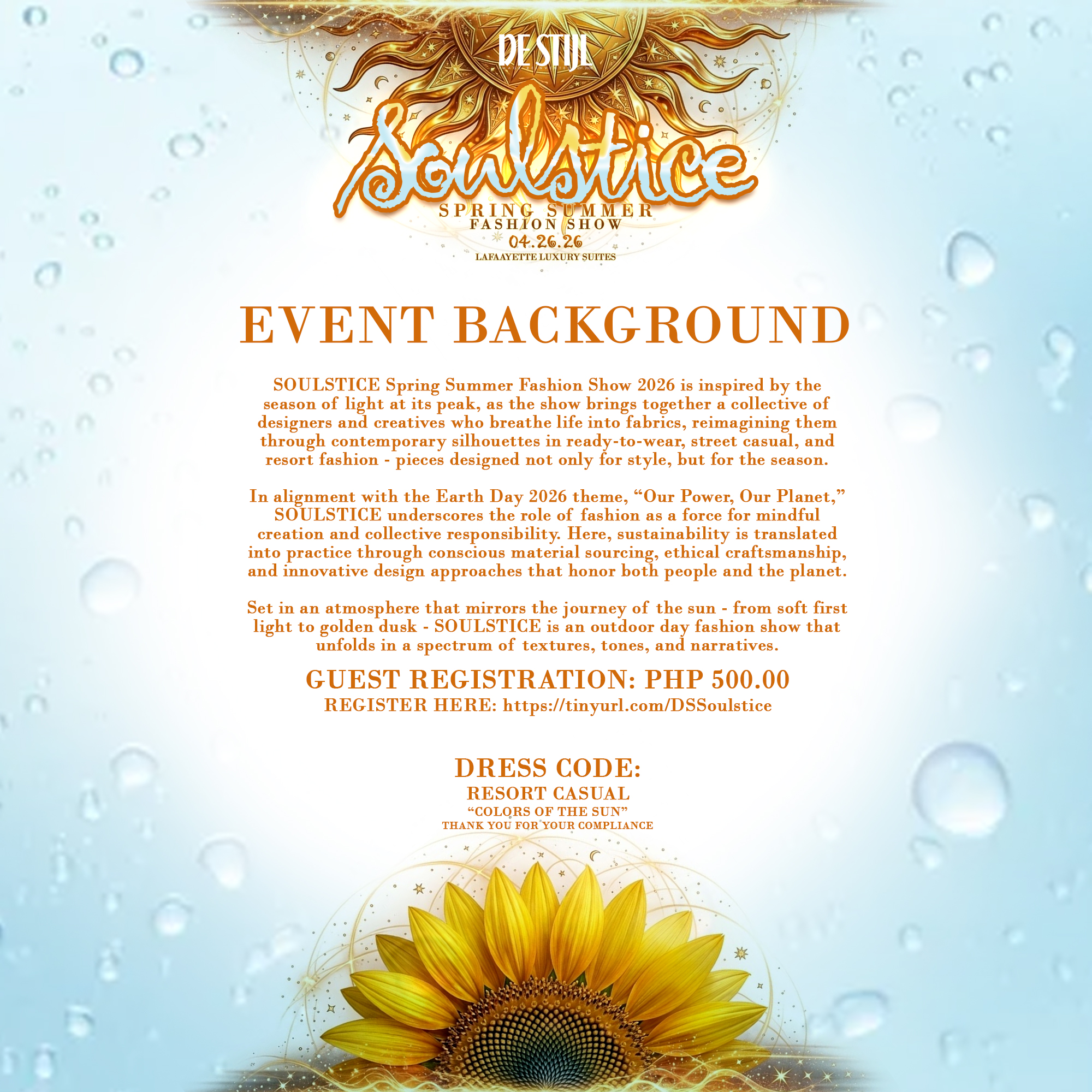 SOULSTICE Spring Summer Fashion Show 2026 is inspired by the season of light at its peak, as the show brings together a collective of designers and creatives who breathe life into fabrics, reimagining them through contemporary silhouettes in ready-to-wear, street casual, and resort fashion - pieces designed not only for style, but for the season.