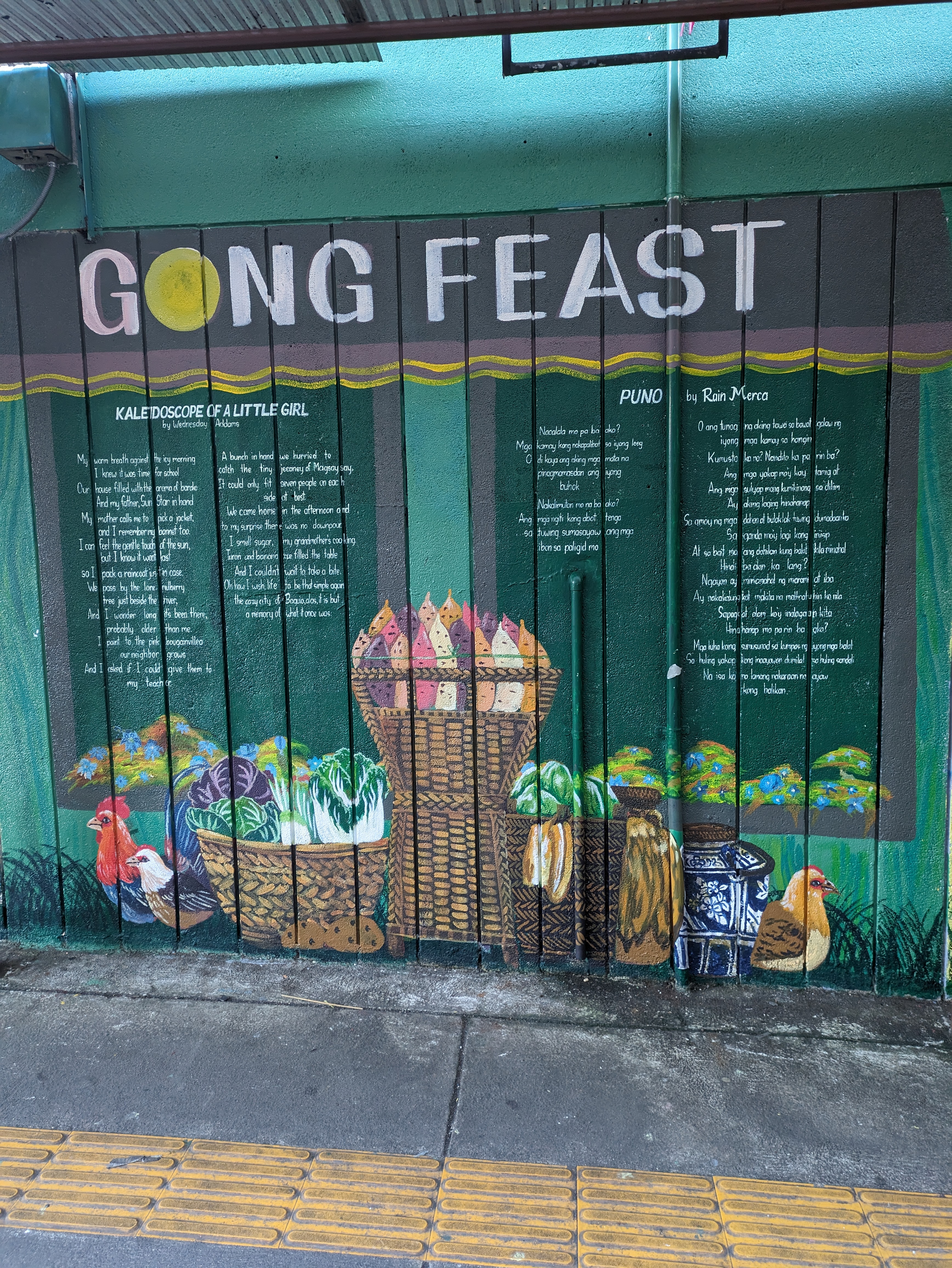 Depicting the continuation of culture through the different eras of Baguio, the mural is free to visit. On one side the mural are the winning poems of the Salimisim Poetry Project, where local poets were asked to submit poetry on the topic of "Memory" "Preserving History" and "Old Baguio"