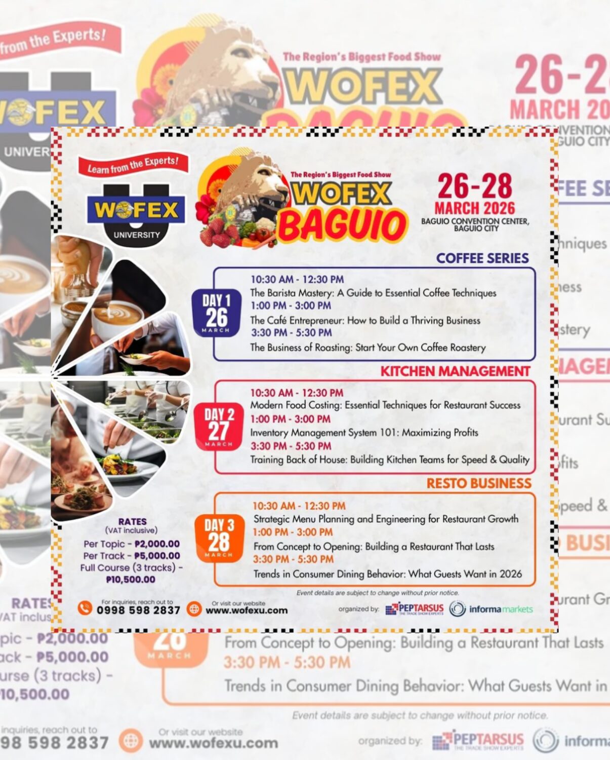 Check out the complete class listings at https://wofexu.com/.../wofex-university-seminars-in-wofex.... Classes will be from March 26-28, 2026 at the Baguio Convention Center.